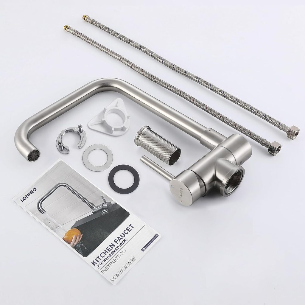 El grifo de cocina abatible Lonheo es ideal para cocinas con fregadero bajo ventanas. Con su diseño plegable y giratorio de 360°, este grifo ofrece mucha comodidad y mayor flexibilidad a la hora de realizar las tareas en la cocina.